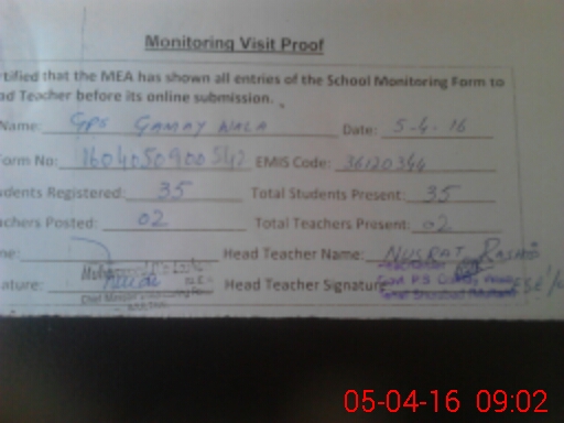 | EMIS Code: 36120344 | Name of School: GPS GAMAY WALA ADDA PIR GHAIB P/O NASEERPUR | |||