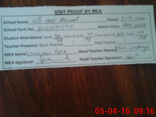 | Attendance Register | Head Teacher | MEA with School | Visit Proof |
