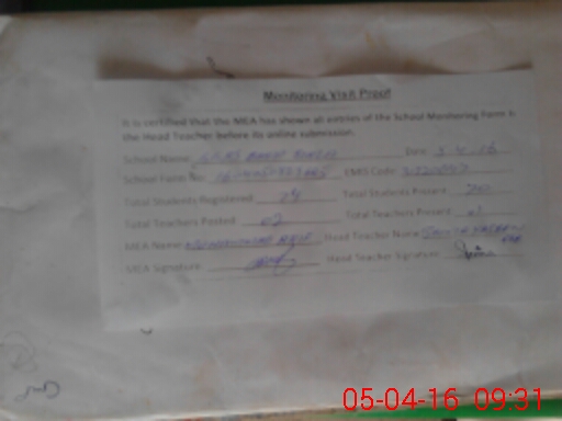 | Attendance Register | Head Teacher | MEA with School | Visit Proof |