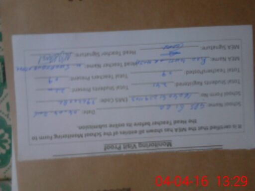 | Attendance Register | Head Teacher | MEA with School | Visit Proof |