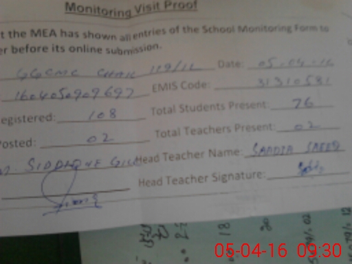| Certified that this School was Inspected by the Undersigned MEA/DMO Today and the Information Stated Above is as Per Record. | |||||