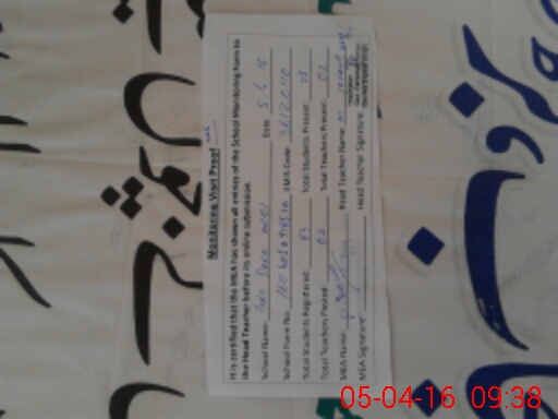 | Remarks (Use Separate Page if Required): 1 School up graded from primary to middle from 1st April 2015 but there is no middle class 2 120 Feet boundary required to be constructed 3 Electricity not available 4 School health and nutrition supervisor not visited this school since long | |||||