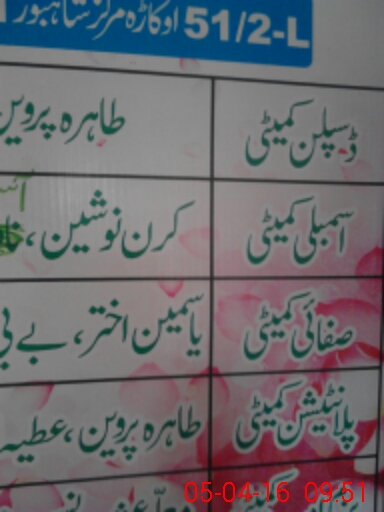 | District: OKARA | Tehsil: OKARA | Markaz: SOUTH CITY - FEMALE | Level: Middle | |