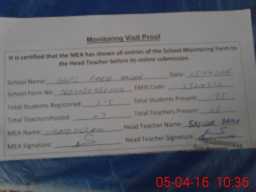 | EMIS Code: 39210372 | Name of School: GGPS MOHALLAH FAREED NAGAR | |||
