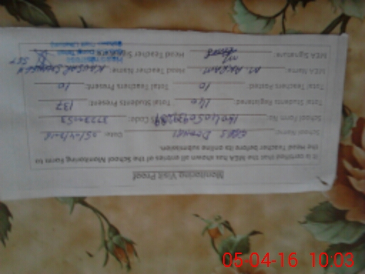 | Attendance Register | Head Teacher | MEA with School | Visit Proof |