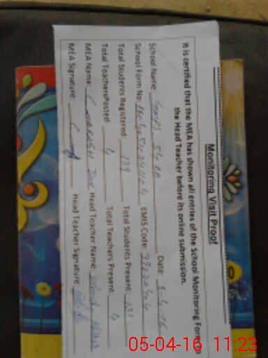 | Attendance Register | Head Teacher | MEA with School | Visit Proof |