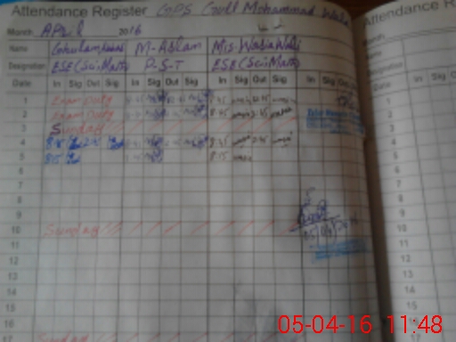 | Total no. of Classrooms: 3 No. of Classrooms Used for Teaching: 3 No. of Classrooms Storing Old Furniture, FTBs, etc: 0Comments if Any: T GUIDE AND AAOW MIL KR PARHEIN BOOKS ARE BEING READ AND TAUGHT NSB RECORD IS NOT AVAILABLE HAND PUMP IS NON FUNCTIONAL SINCE PREVIOUS 5 DAYS IN MARCH 2016 DTE VISIT NIL |