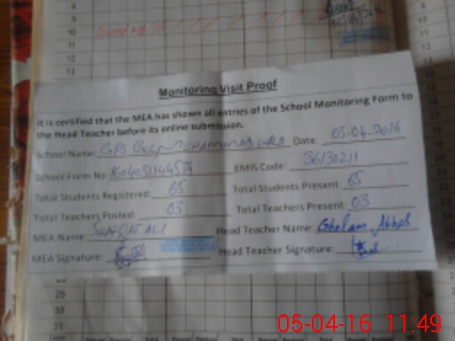 | EMIS Code: 36130211 | Name of School: GPS GUL MUHAMMAD WALA MULTAN | |||