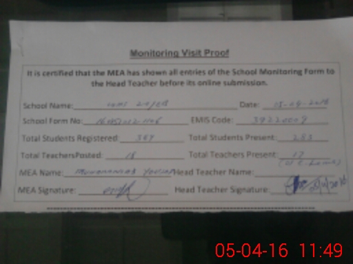| Certified that this School was Inspected by the Undersigned MEA/DMO Today and the Information Stated Above is as Per Record. | |||||