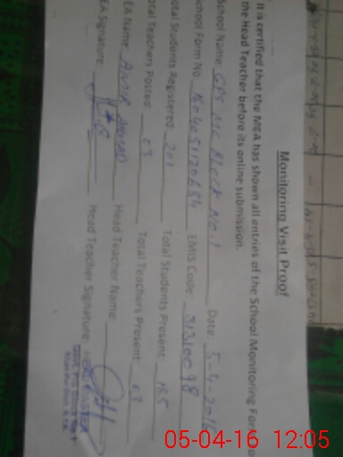 | EMIS Code: 31310098 | Name of School: GPS MC HALQA NO 1 | |||