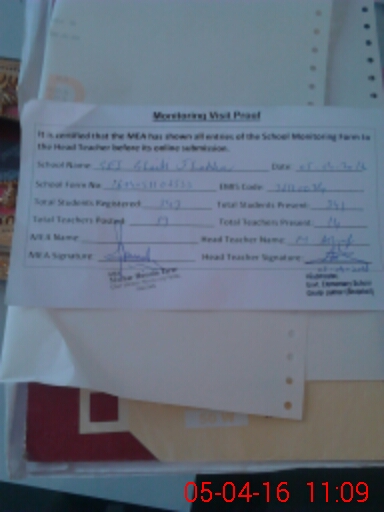 | Attendance Register | Head Teacher | MEA with School | Visit Proof |