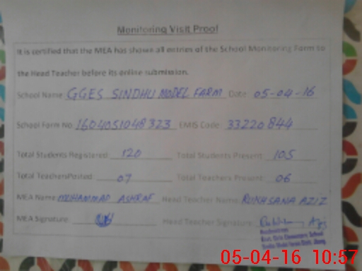 | EMIS Code: 33220844 | Name of School: GGES SINDHU MODEL FARM (Newly upgraded) | |||