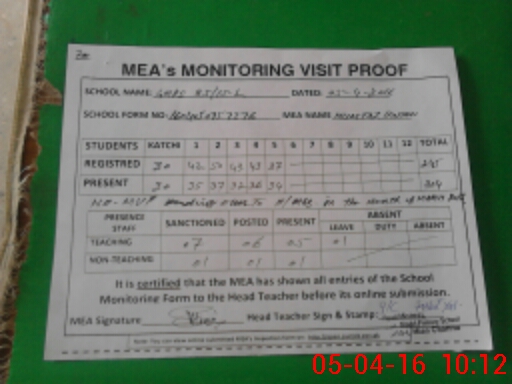| Attendance Register | Head Teacher | MEA with School | Visit Proof |