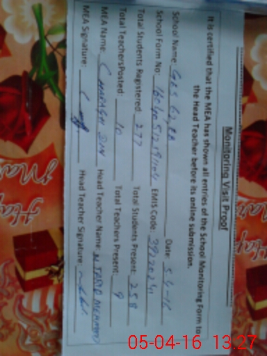 | Certified that this School was Inspected by the Undersigned MEA/DMO Today and the Information Stated Above is as Per Record. | |||||