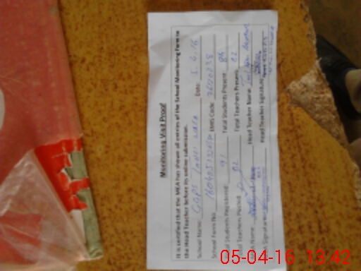 | Attendance Register | Head Teacher | MEA with School | Visit Proof |