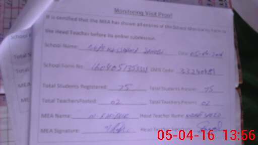 | Attendance Register | Head Teacher | MEA with School | Visit Proof |