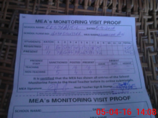 | Attendance Register | Head Teacher | MEA with School | Visit Proof |