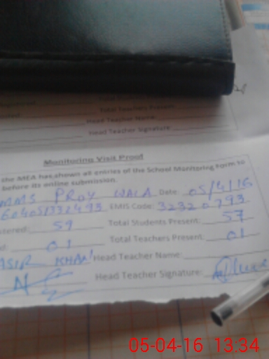 | Attendance Register | Head Teacher | MEA with School | Visit Proof |
