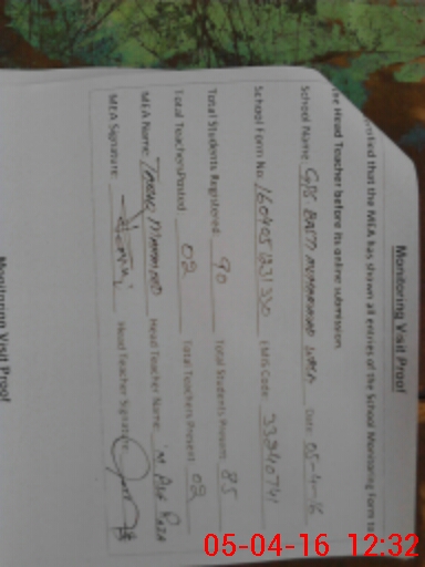 | Attendance Register | Head Teacher | MEA with School | Visit Proof |