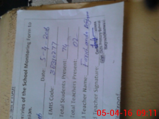 | Attendance Register | Head Teacher | MEA with School | Visit Proof |