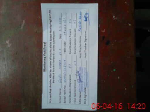 | Attendance Register | Head Teacher | MEA with School | Visit Proof |