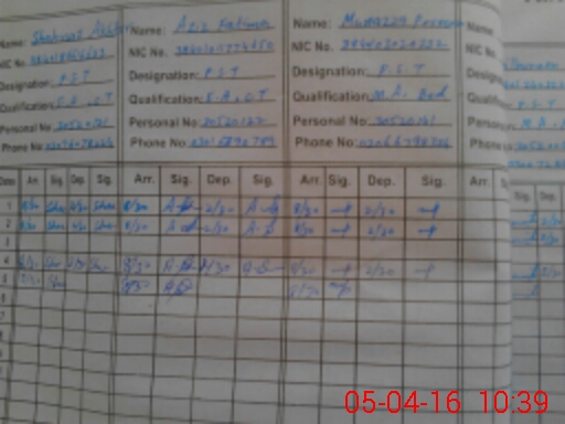| CNIC | Full Name | Designation | R/C | Absence During Last Calender Month |