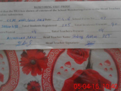 | Attendance Register | Head Teacher | MEA with School | Visit Proof |