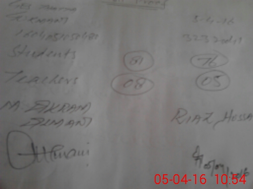| Monitoring Date: 05-04-2016 | Start Time: 05-04-2016 10:34 AM | End Time: 05-04-2016 10:57 AM | Name of MEA: M.Ak**** Al**** | |