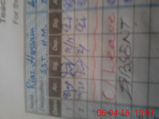 | 32**** | Ri**** Hu**** | S.S.T.(GENERAL) | 4 | 0 | 1 | 0 | 0 | 0 | 0 | 0 | 4 | Absent (Un-Authorized) | |