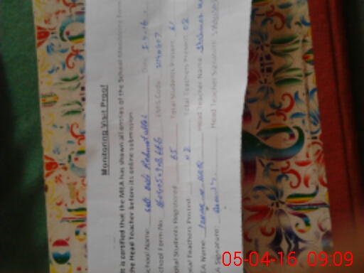 | Monitoring Date: 05-04-2016 | Start Time: 05-04-2016 08:49 AM | End Time: 05-04-2016 09:13 AM | Name of MEA: Mu**** Iz**** UlHa**** | |