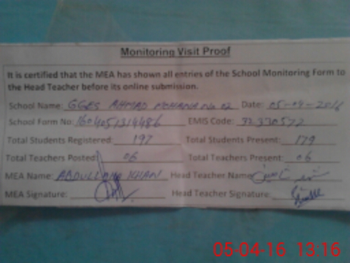 | EMIS Code: 32330572 | Name of School: GGES AHMAD MOHANA NO.2 | |||