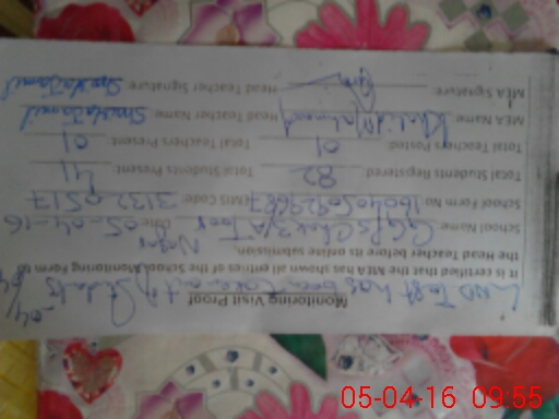 | Monitoring Date: 05-04-2016 | Start Time: 05-04-2016 09:29 AM | End Time: 05-04-2016 09:55 AM | Name of MEA: Mu**** As**** KP**** | |