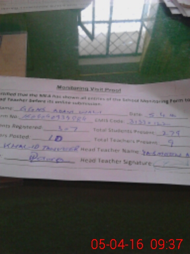 | Attendance Register | Head Teacher | MEA with School | Visit Proof |
