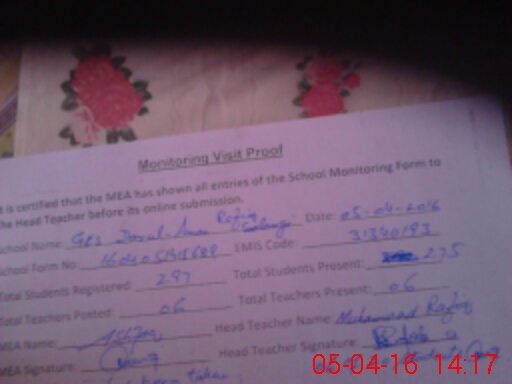 | Certified that this School was Inspected by the Undersigned MEA/DMO Today and the Information Stated Above is as Per Record. | |||||