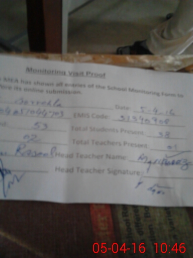 | Attendance Register | Head Teacher | MEA with School | Visit Proof |