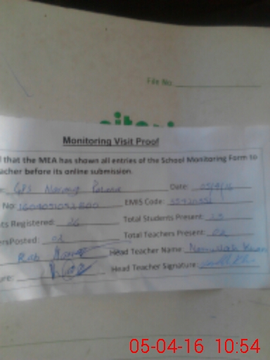 | Certified that this School was Inspected by the Undersigned MEA/DMO Today and the Information Stated Above is as Per Record. | |||||