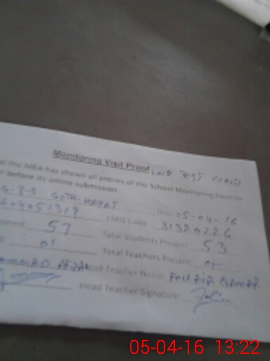 | EMIS Code: 31320599 | Name of School: GGPS GOTH HAYAT | |||