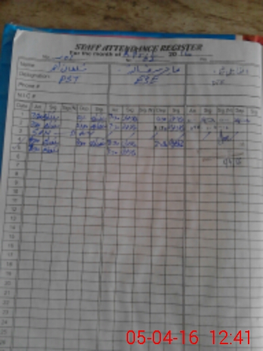 | CNIC | Full Name | Designation | R/C | Absence During Last Calender Month |