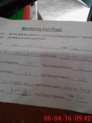 | Attendance Register | Head Teacher | MEA with School | Visit Proof |
