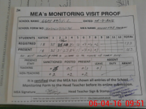 | Certified that this School was Inspected by the Undersigned MEA/DMO Today and the Information Stated Above is as Per Record. | |||||