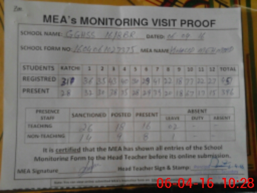 | Attendance Register | Head Teacher | MEA with School | Visit Proof |