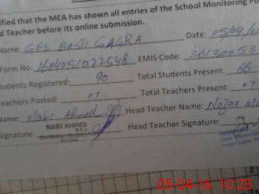 | EMIS Code: 36130053 | Name of School: GES BASTI GAGRA P/O JHOKE VAINCE | |||