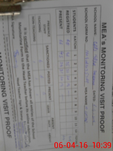 | Monitoring Date: 06-04-2016 | Start Time: 06-04-2016 10:13 AM | End Time: 06-04-2016 10:40 AM | Name of MEA: M.Is**** (S**** 03**** | |