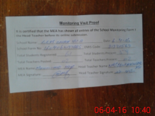 | Attendance Register | Head Teacher | MEA with School | Visit Proof |