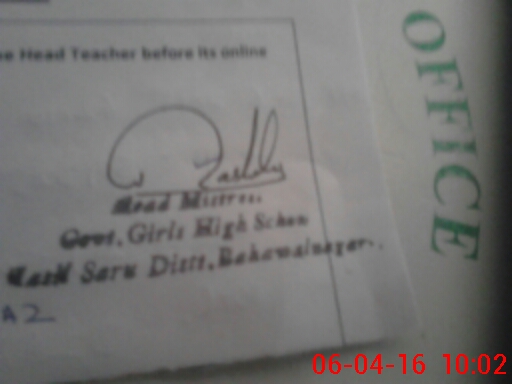 | Name: MU**** MA**** Designation: (School Headmaster's/Headmistress's) SST Phone/Cell Number: 03**** |