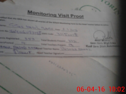 | Attendance Register | Head Teacher | MEA with School | Visit Proof |