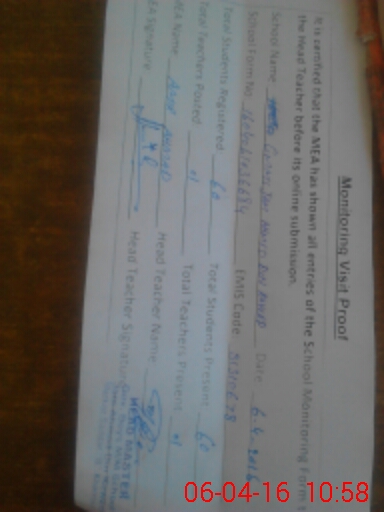 | Certified that this School was Inspected by the Undersigned MEA/DMO Today and the Information Stated Above is as Per Record. | |||||