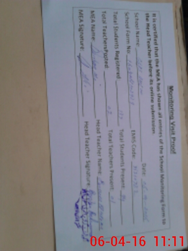 | Certified that this School was Inspected by the Undersigned MEA/DMO Today and the Information Stated Above is as Per Record. | |||||