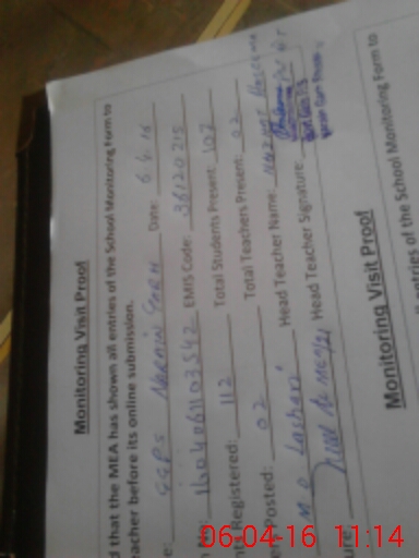 | Attendance Register | Head Teacher | MEA with School | Visit Proof |