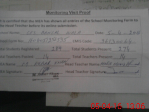 | EMIS Code: 36130064 | Name of School: GES BANGAL WALA P/O KOT ABBAS MELA RAM | |||